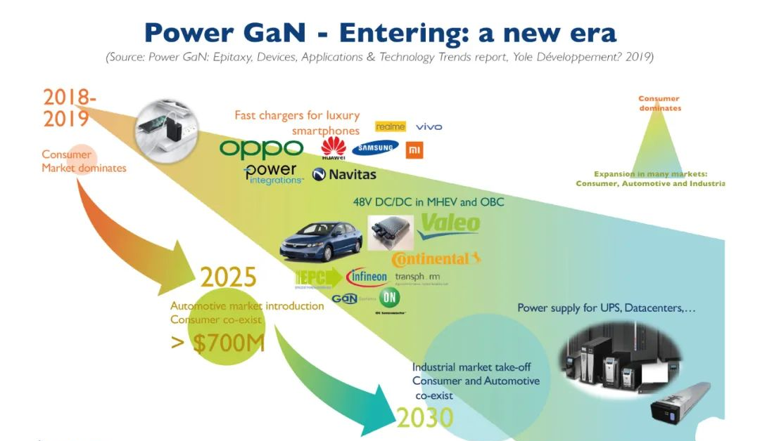 氮化镓(GaN)主要销售给消费电子市场,例如用于快速充电器,而且现在已经得到广泛应用。